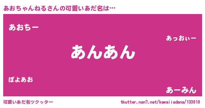 | 2回繰り返すあだ名 | 『あおあお』『ああおお』『ちんちん』 |