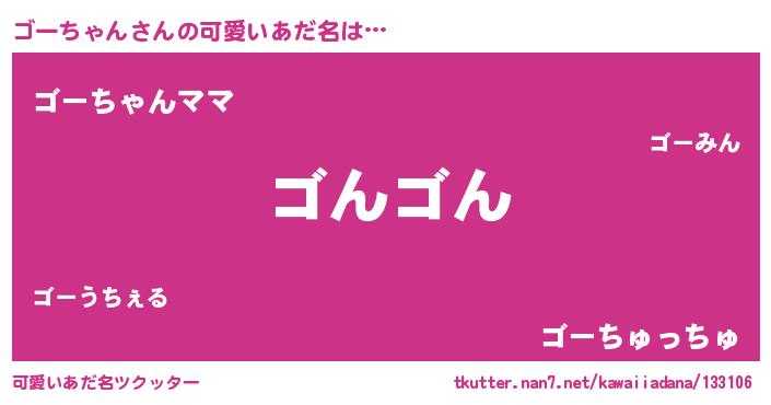 | 意味不明あだ名 | 『ペロリンゴーちゃん』『自称ゴーちゃん』 |