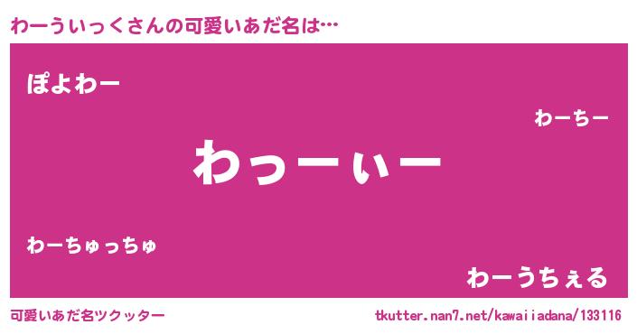| ヘコむあだ名 | 『わーっ子』『豆乳』『わーっふぃ~』 |
