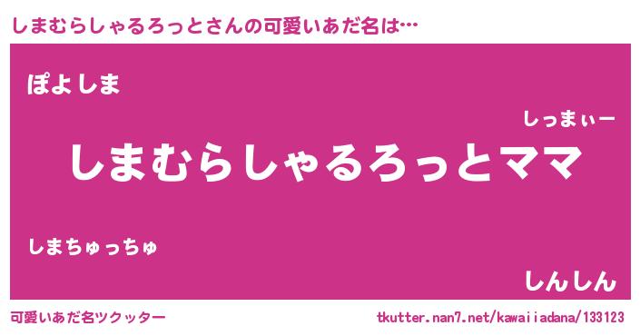 | 意味不明あだ名 | 『永久保存しまむらしゃるろっと』 |