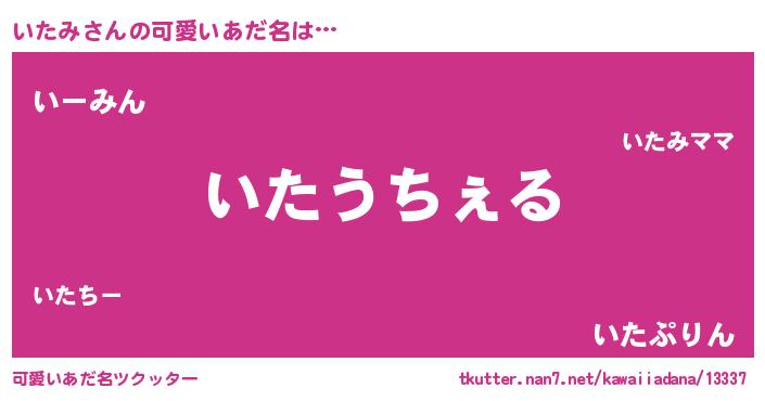 | 男性向けラノベタイトル風あだ名 | 『Re:いたみから始める異世界生活』 |