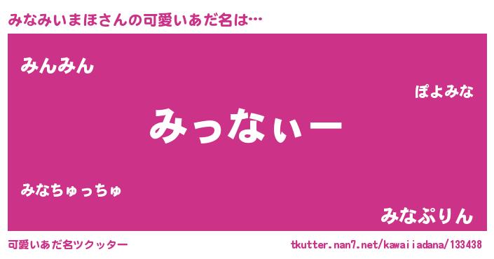| ヘコむあだ名 | 『みなぷりん』『みなっふぃ~』 |