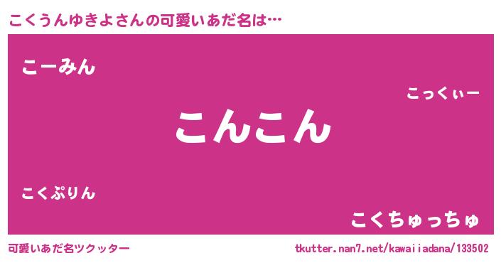 | 男性向けラノベタイトル風あだ名 | 『コクウンユキヨアートオンライン』 |