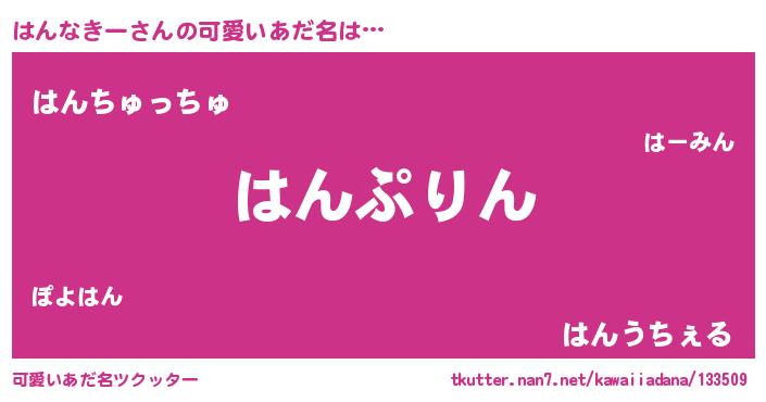 | 料理風あだ名 | 『はんなきーごはん』 |