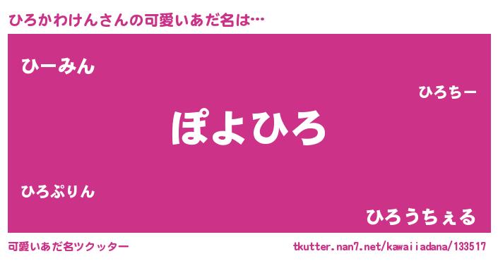 | 男性向けラノベタイトル風あだ名 | 『この素晴らしい世界にひろかわけんを!』 |