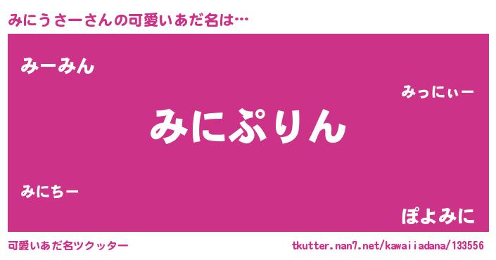 | 女子向けラノベタイトル風あだ名 | 『みにうさーの玉の輿計画!』 |
