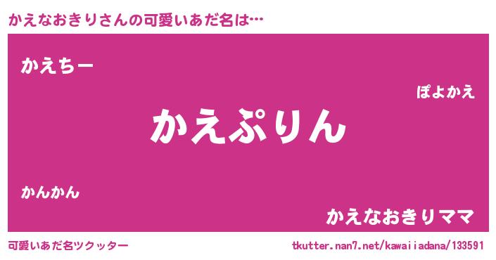 | 男性向けラノベタイトル風あだ名 | 『かえなおきりに滅ぼされるだけの簡単なお仕事です』 |