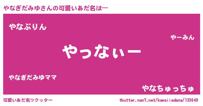 | ヘコむあだ名 | 『やなっぺ』『やなぎだみゆ(爆)』 |