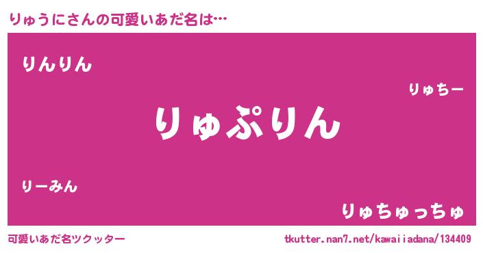 | 男性向けラノベタイトル風あだ名 | 『りゅうに~年齢イコール彼女いない歴の魔法使い~』 |