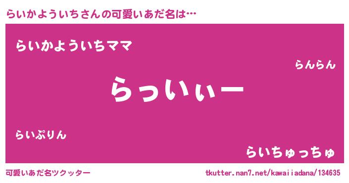 | 女子向けラノベタイトル風あだ名 | 『らいかよういちの卵を拾いまして』 |