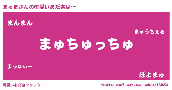 | ヘコむあだ名 | 『まゅっふぃ~』『まゅぷりん』 |
