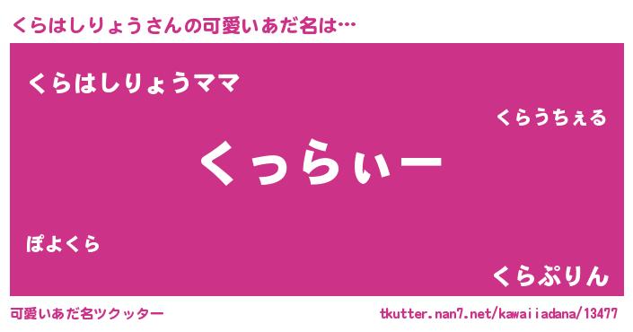 | 意味不明あだ名 | 『とにかく怪しいくらはしりょう』 |