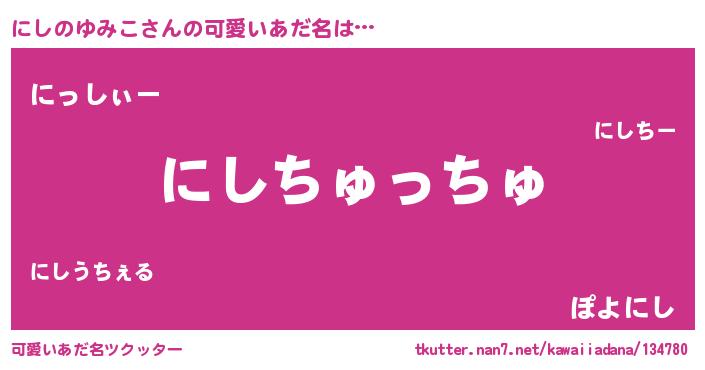 | ポケモン風あだ名 | 『ニックウザ』『ヒニシノユミコ』 |