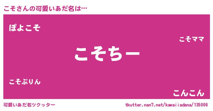| ヘコむあだ名 | 『豆乳』『こそにゅー』『こそっちょ』 |
