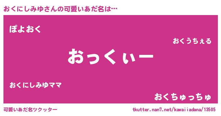 | 意味不明あだ名 | 『とにかく怪しいおくにしみゆ』 |