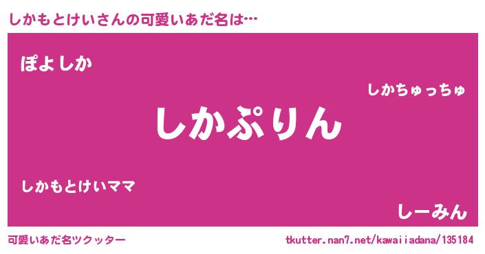 | ヘコむあだ名 | 『しかもとけい(苦笑)』『しかっちょ』 |