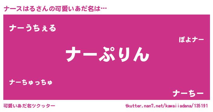 | 恥ずかしいあだ名 | 『ナースハルデラックス』『ナーっちょ』 |
