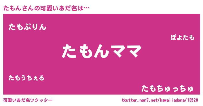 | 意味不明あだ名 | 『永久保存たもん』『なめこ科たもん属』 |