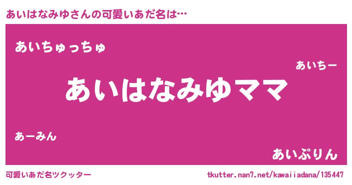 | ヘコむあだ名 | 『あいはなみゆ(笑)』『豆乳』 |