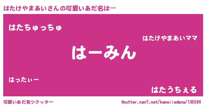 | ヘコむあだ名 | 『はたけやまあい(震え声)』『はたお』 |