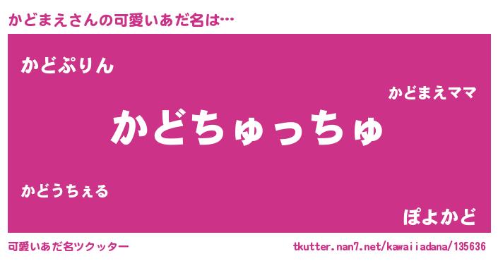 | ヘコむあだ名 | 『かどまえ(笑)』『かどぷりん』 |