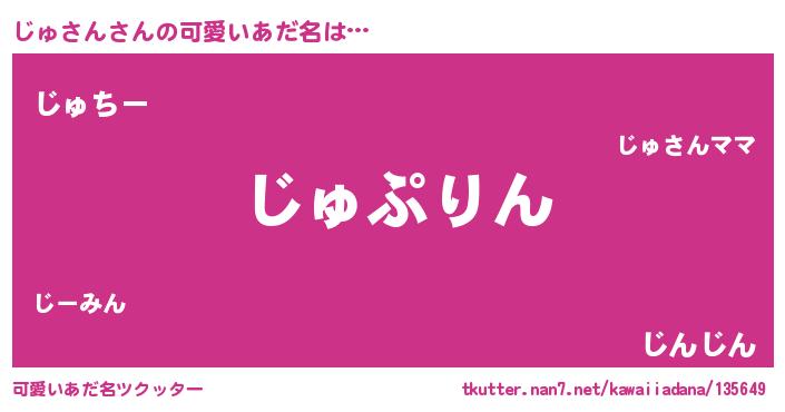 | 女子向けラノベタイトル風あだ名 | 『じゅさんの玉の輿計画!』 |