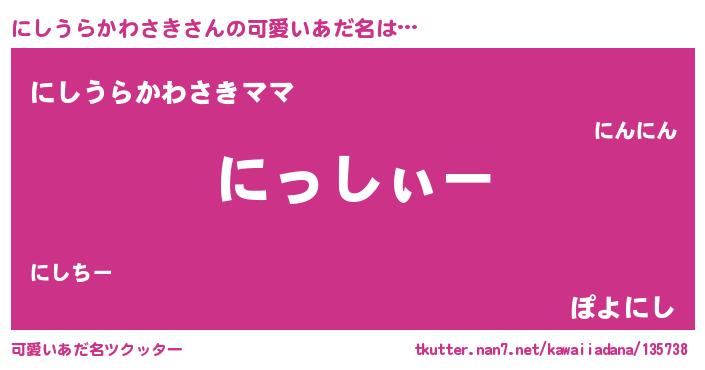 | ポケモン風あだ名 | 『ヒニシウラカワサキ』『ゼニニシ』 |