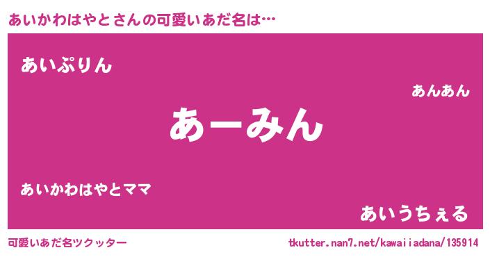 | ヘコむあだ名 | 『あいもー』『あいかわはやと(苦笑)』 |