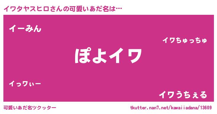 | 意味不明あだ名 | 『住所不定無職イワタヤスヒロ(2歳)』 |