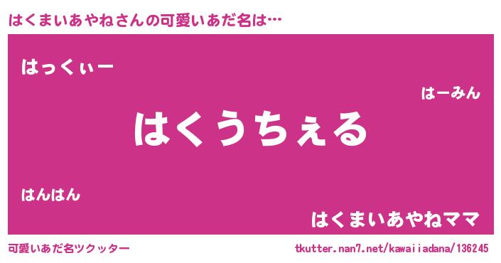 恥ずかしいあだ名 | 『ハクマイアヤネデラックス』『はくちん』 |