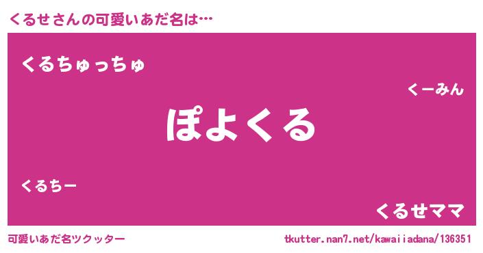 | ヘコむあだ名 | 『くるせ(笑)』『豆乳』『くるぷりん』 |