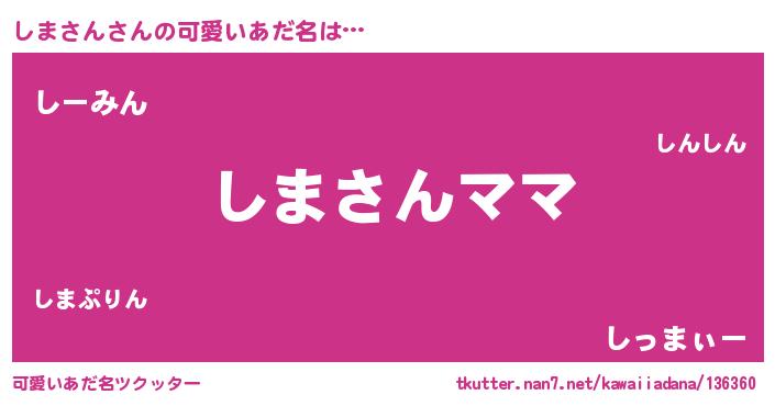 | 男性向けラノベタイトル風あだ名 | 『しまさんという概念が存在しない退屈な世界 』 |