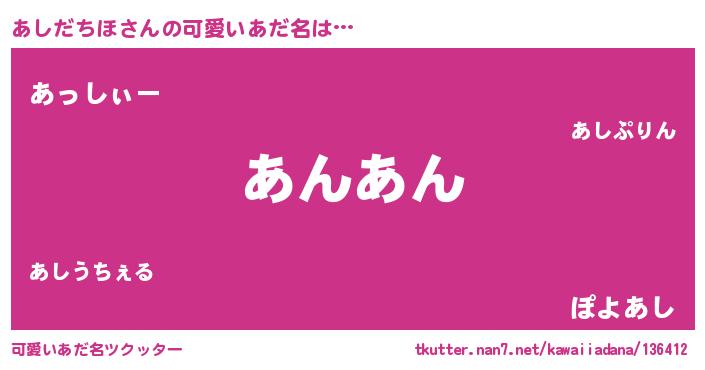 | ヘコむあだ名 | 『あしにゅー』『あしを』『なまこ酢』 |