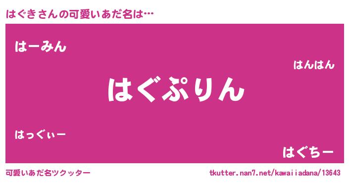 | ヘコむあだ名 | 『豆乳』『はぐにゅー』『はぐぷりん』 |