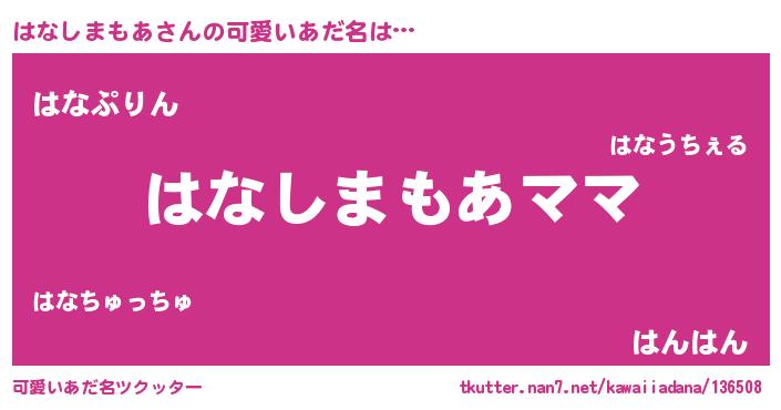 | ヘコむあだ名 | 『はなしまもあ(爆)』『はなにー』 |