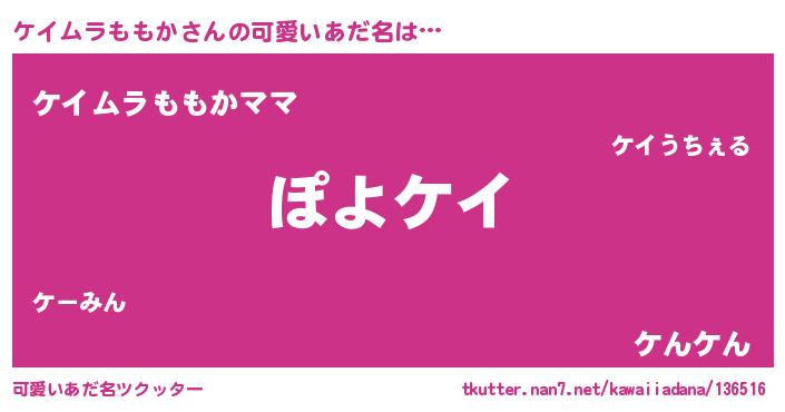 | 恥ずかしいあだ名 | 『ケイちん』『プリティーケイムラももか』 |