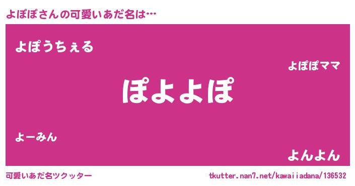 | 意味不明あだ名 | 『住所不定無職よぽぽ(2歳)』『自称よぽぽ』 |