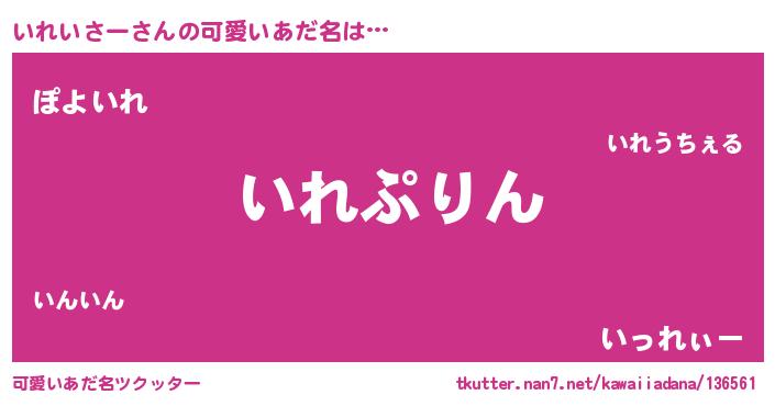 | 男性向けラノベタイトル風あだ名 | 『いれいさー~年齢イコール彼女いない歴の魔法使い~』 |