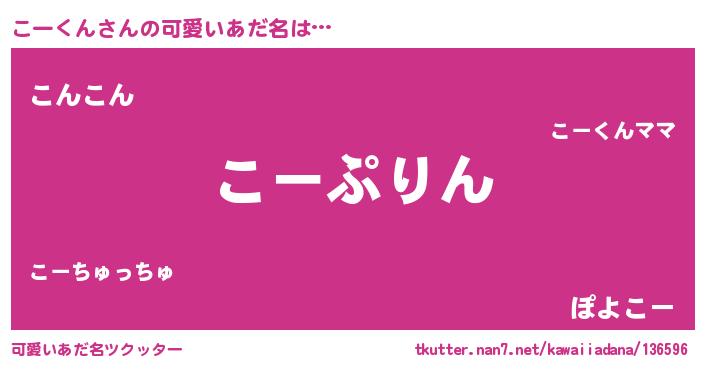 | 女子向けラノベタイトル風あだ名 | 『こーくんの玉の輿計画!』 |