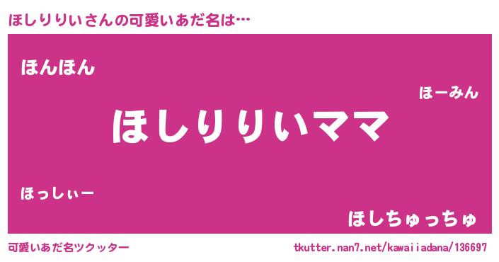 | ヘコむあだ名 | 『ほしりりい(苦笑)』『ほしにゅー』 |