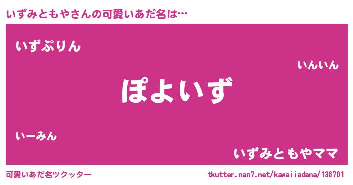 | 恥ずかしいあだ名 | 『いずちん』『プリティーいずみともや』 |