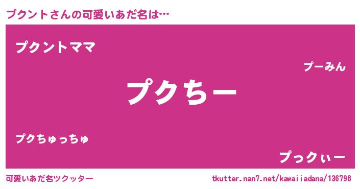 | 意味不明あだ名 | 『プクントフォーエバー』 |
