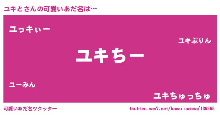 | 女子向けラノベタイトル風あだ名 | 『ユキとの雑貨屋さん』『ユキと恋絵巻』 |