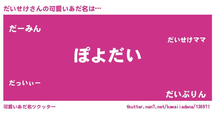 | ヘコむあだ名 | 『だいせけ(笑)』『だいっ子』 |