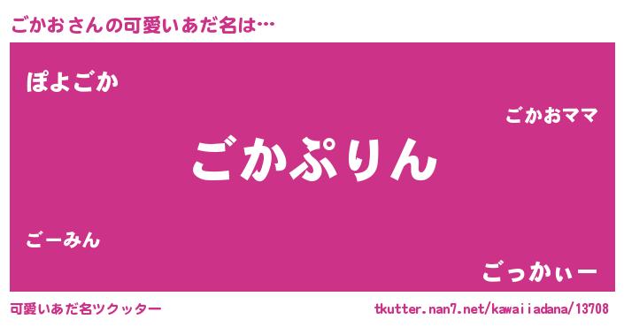 | ヘコむあだ名 | 『ごかぷりん』『ごかお(笑)』『豆乳』 |