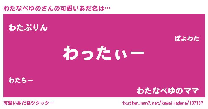 | ヘコむあだ名 | 『わたぷりん』『わたなべゆの(苦笑)』 |