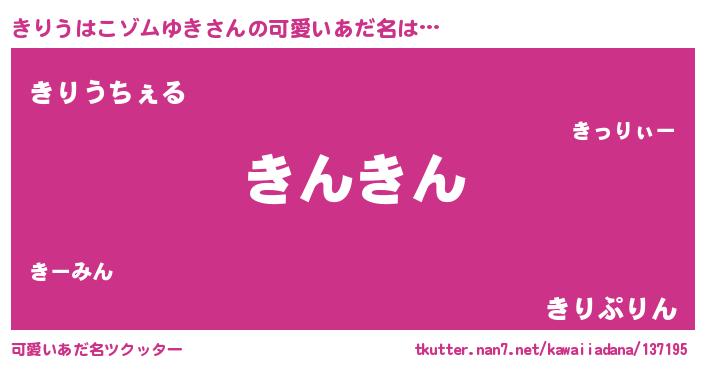 | 男性向けラノベタイトル風あだ名 | 『きりうはこゾムゆきの憂鬱』 |