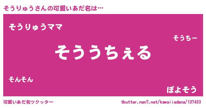 | 意味不明あだ名 | 『自称そうりゅう』『永久保存そうりゅう』 |