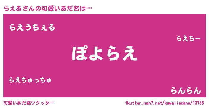 | 意味不明あだ名 | 『住所不定無職らえあ(3歳)』『自称らえあ』 |