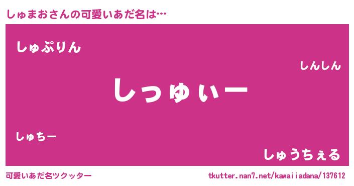 | 男性向けラノベタイトル風あだ名 | 『ダンジョンにしゅまおを求めるのは間違っているだろうか』 |